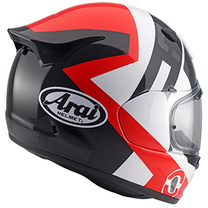 Presa d’aria integrata nel Logo Arai 3D, nuova presa d’aria mentoniera, Tear-Ducts derivate dalle prese d’aria utilizzate in F1 e spoiler estrattore posteriore ereditato da RX-7V Racing